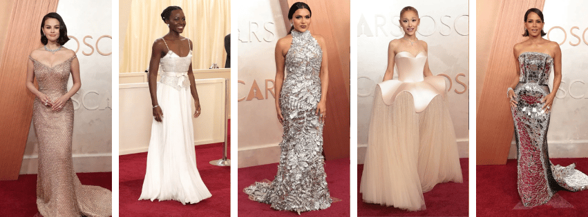 2025 Oscars Red Carpet: The Oscars red carpet was absolutely beautiful this year! These five women are just a few of the many amazing looks we saw—not including the red carpet at the Vanity Fair After Party. We love how feminine and powerful each of these looks are. Selena Gomez is portraying Old Hollywood glam perfection. Lupita Nyong’o’s dress is the epitome of femininity, but with a structured touch. If we were Mindy Kaling, we would never take this dress off. Ariana Grande’s dress is feminine and playful. Plus, it’s a built-in table! And, Halle Berry’s dress is a masterpiece.