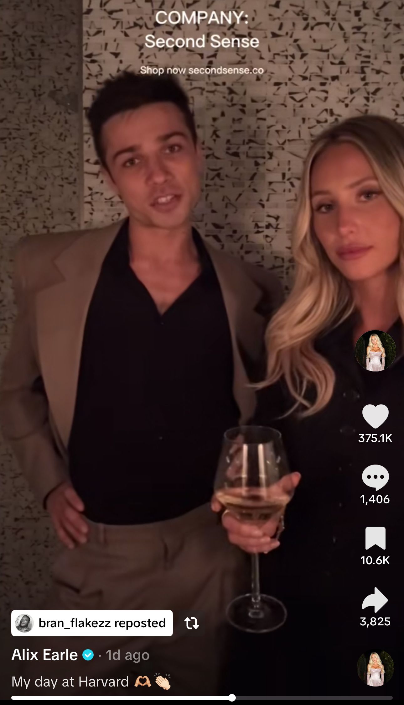 We all know Alix Earle. She’s an ‘it girl” and has millions of followers on TikTok. This week, she went to Harvard Business School to lead some discussions about influence, investing, and marketing. She created her normal GRWM and Day in the Life content. But, also used the opportunity and her platform to promote businesses the students had started and were working on. It’s absolutely changed the game for some of these businesses. Her attention and willingness to promote these brands even crashed Second Sense’s website!